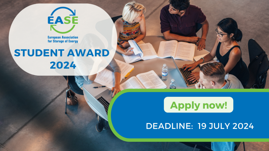 The European Association for Storage of Energy (EASE) is proud to announce for the ninth year its annual Student Award, recognising outstanding graduate student research in the field of energy storage.